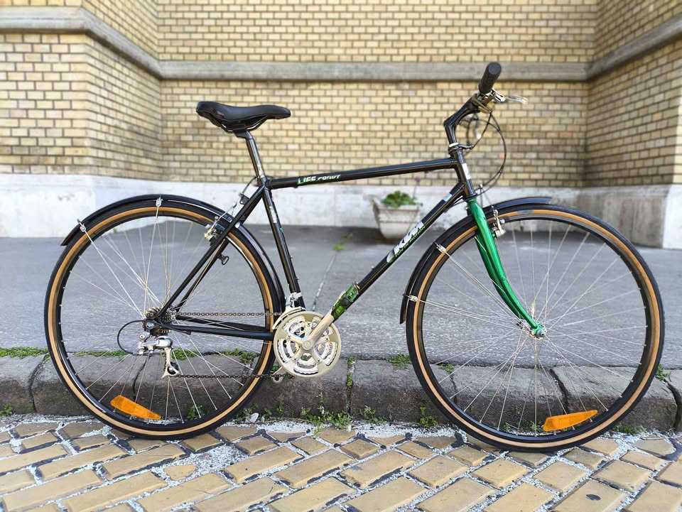 |  |  |  |  | | KTM Strada, frissen felújított állapotban. 62 cm. magas és 58 cm. hosszú váz, 185 cm. testmagasság felett lehet jó. Új, sötétkék, lakkotozott porlakk festés. 2x6 sebességes Shimanpo Exage szett, Schwalbe Marathon gumik, új nyereg, nyeregcső, fékkar, fékbetétek, pedál, bandázs és bovdenezés. Kipróbálható a Rózsák terénél. | Ár: 149 990,- HUF 129 990,- HUF | Akciós! |