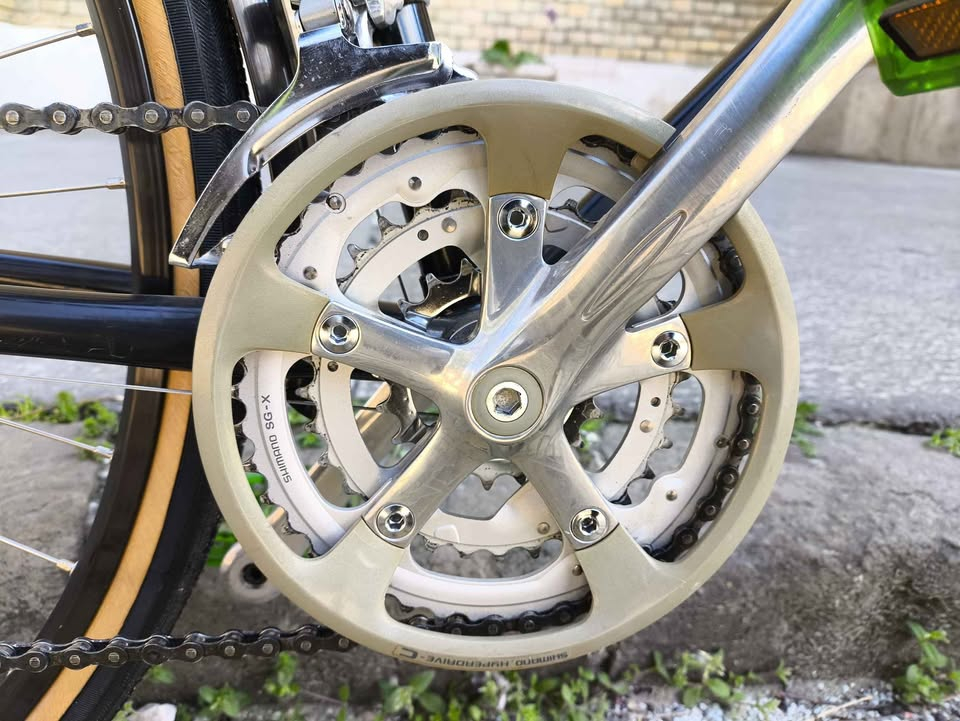 |  |  |  |  | | Tange double butted váz, 53 cm. magas, jelenlegi kormánnyal kb. 165 cm. testmagassághoz a legjobb. Komplett pezsgő 105 felszerelés a fékkarok kivételével. Új gumik, kormány, fékkar, nyereg, monoblokk, pedál, bovdenezés. Minden csapágy zsírozva, beállítva. Kipróbálható a Rózsák terénél. |